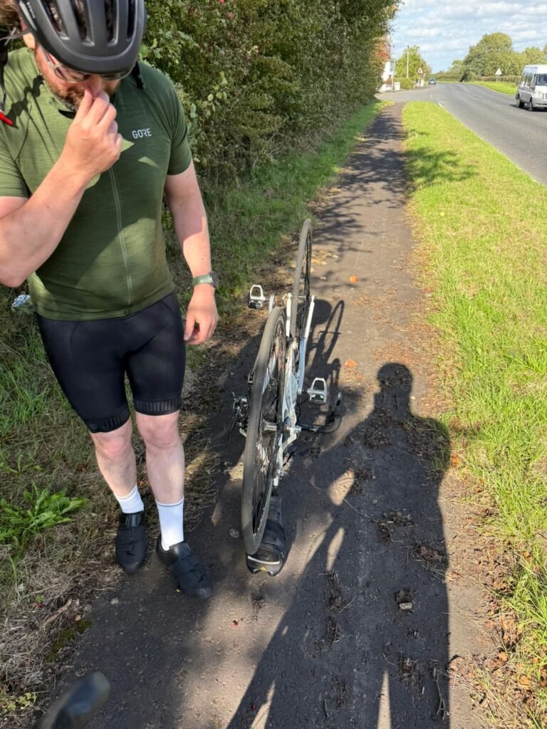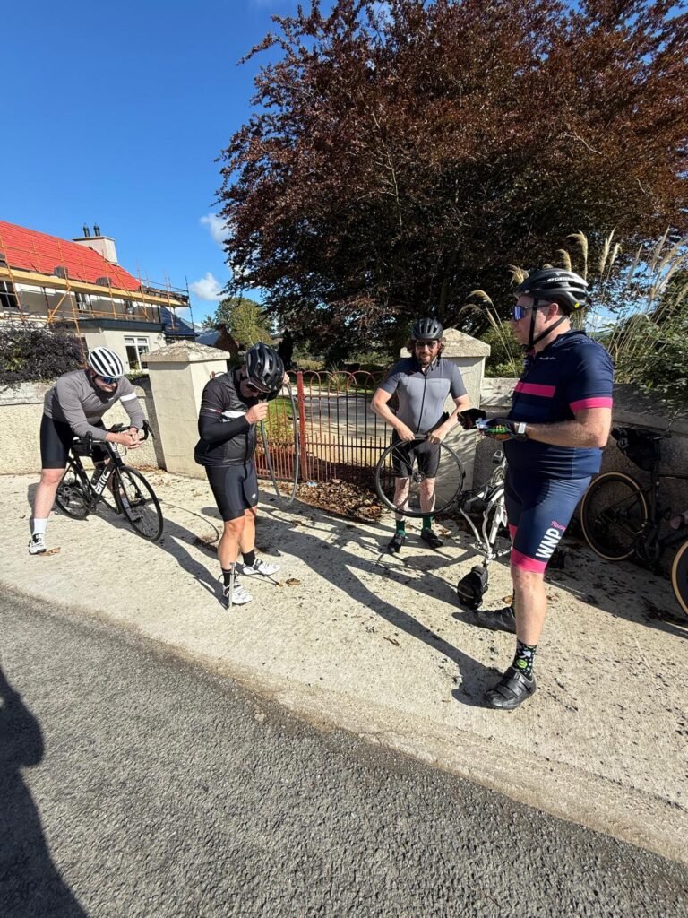 There were no remaining tubes or repair kit. The ride was over for Damien with seven kilometres to go and legs of stone.